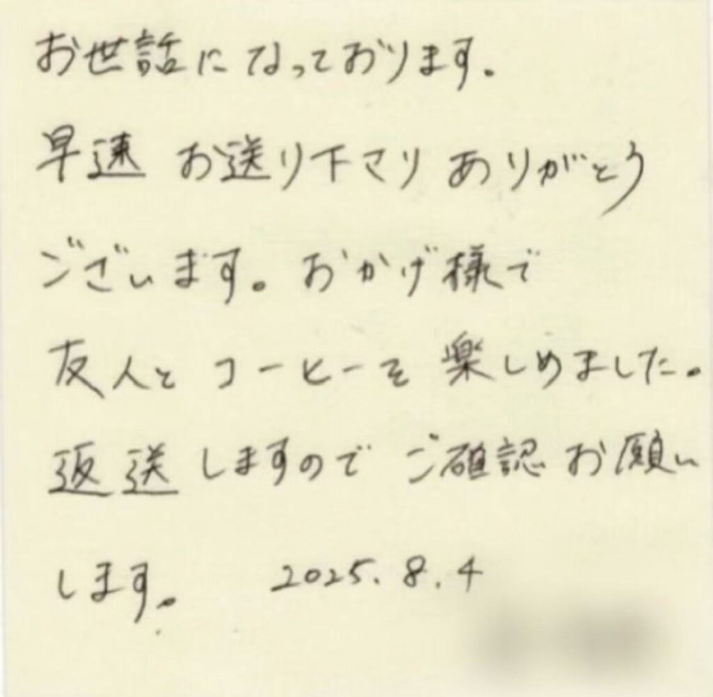 (※お手紙のお名前にはモザイク処理させていただいております)